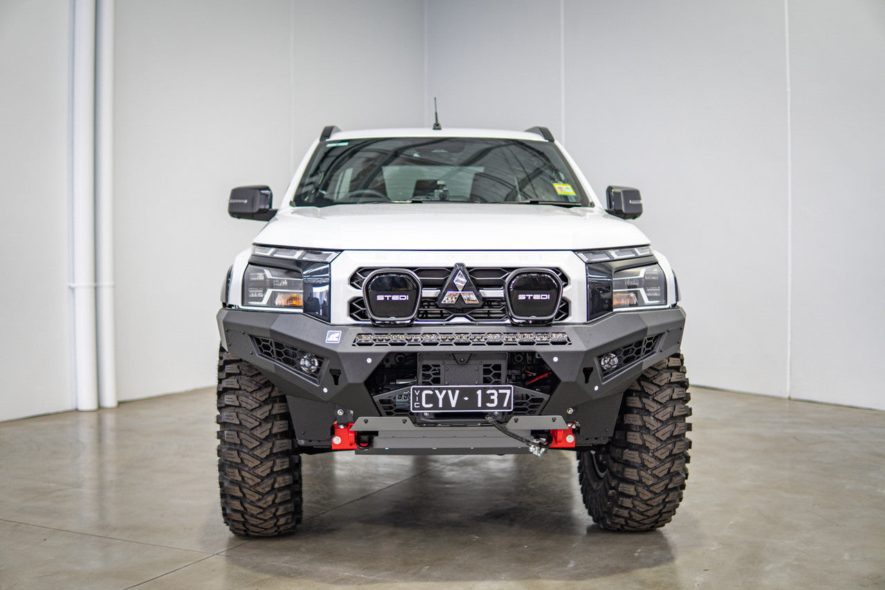 Meet the Predator bull bar, the ultimate Mitsubishi Triton upgrade. Crafted from reinforced steel, zinc plated and powder coated in matte black powder coat. It's built to tackle tough terrain while adding a sleekl aggressive look to your ride. Designed for easy installation, it fits your Trito perfectly, enhancing protection and style wihtout compromising functionality. With integrated LED mounts for improved visibility, the Predator bar turns your Triton into and Off-road conqueror. Ready for adventure? Equip your Triton with the Predator bull bar.