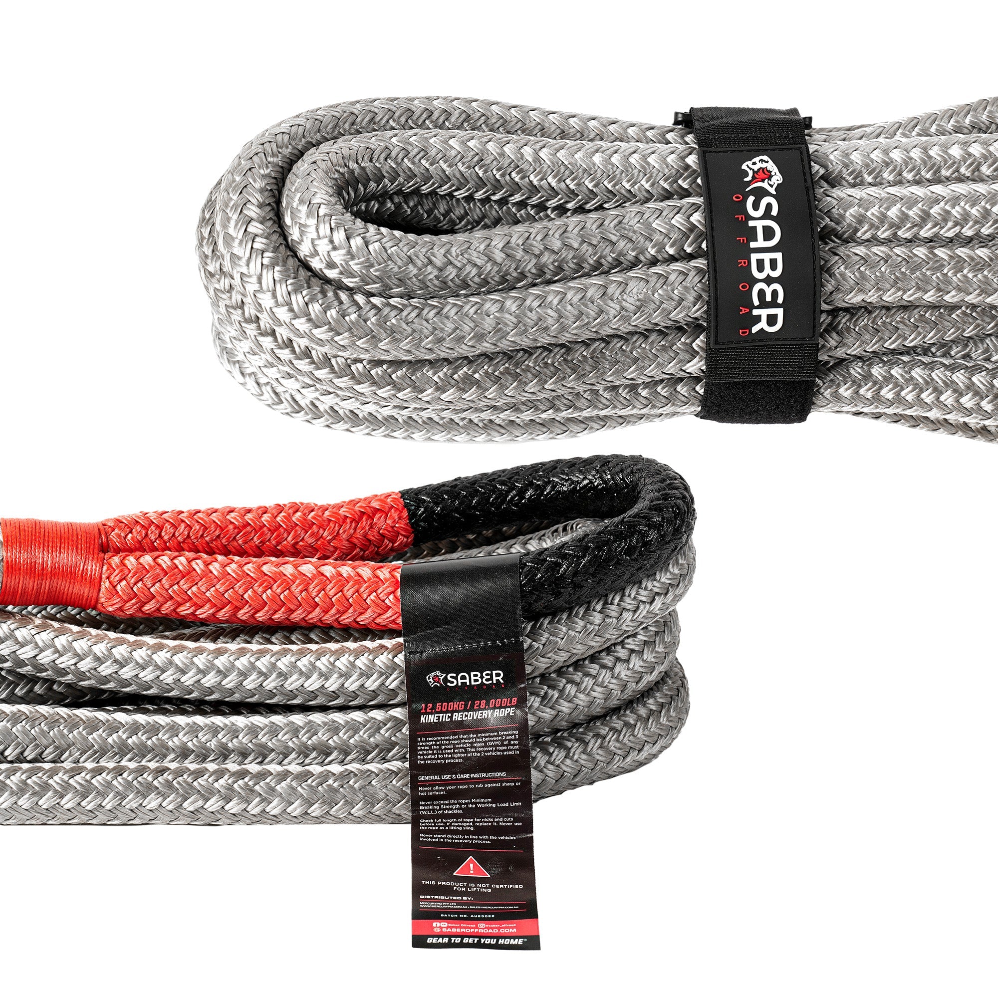 The Saber Kinetic Recovery Rope - 12,000KG, the ultimate solution for safe and efficient vehicle recoveries in challenging terrains. Engineered to provide a smoother and safer way to assist stranded vehicles in mud, sand, water, snow, and more, this kinetic recovery rope outperforms traditional snatch straps by offering up to 30% stretch, minimising strain on vehicles and ensuring a smooth recovery process.