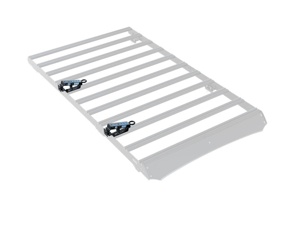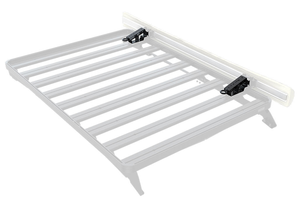 This pair of brackets secures to the slats of your rack to accommodate most Front Runner side mount accessories. The brackets are adjustable and can be set at any position along the T-slot of the rack slats. Made from the same back powder-coated aluminum as Front Runner racks. Includes installation hardware and fitting instructions. No drilling is required to attach side accessories.