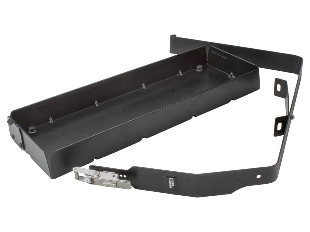 The adjustable stainless steel latch with safety catch holds your Jerry Can firmly in place over a lifetime of off-road abuse. For use with 20l / 5.3 gallon NATO/Wedco style military cans. This strap covers the Jerry can cap. Add your own cable lock or RRAC134 and you'll never have to worry about stolen fuel while on the road. Made of black powder coated high strength steel and designed to easily bolt to the Front Runner Roof Racks using the flat slotted slats in the rack. Note: Not suitable for Scepter style containers.