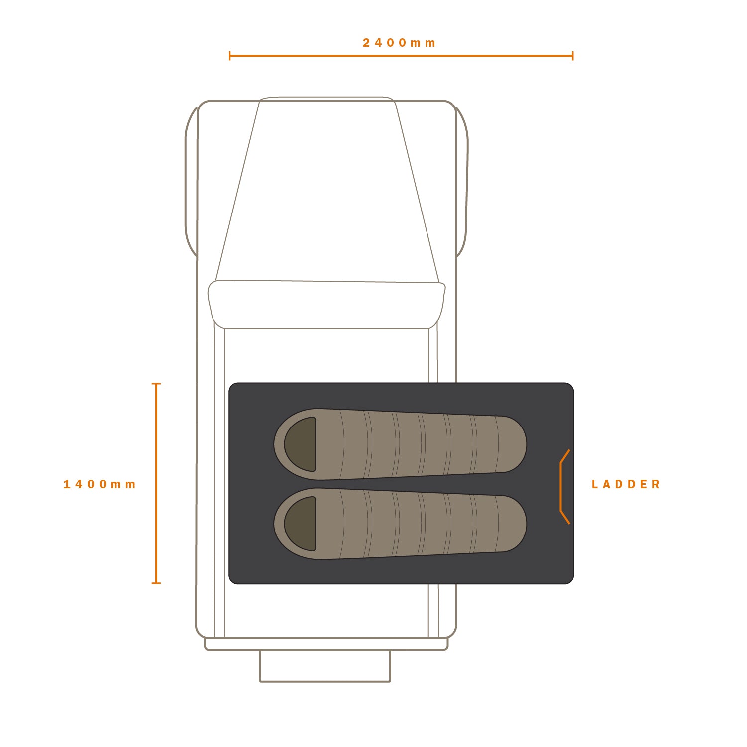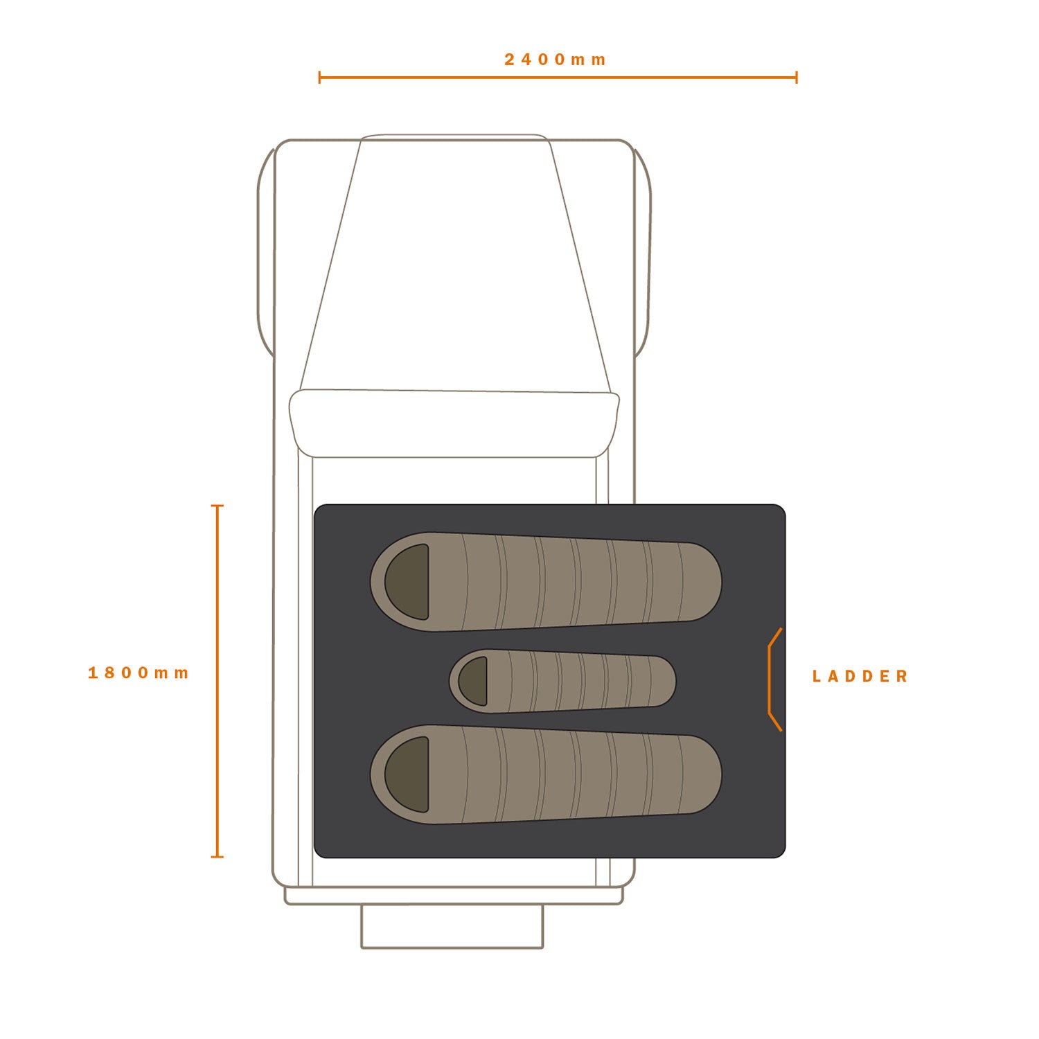 This versatile workhorse will be your home away from home. Bush, beach, or desert, you'll be tucked up high and safely away from the crocs and critters in minutes, with the simple setup and pack-down design. Just fold out your RTT, drop the telescopic ladder, and enjoy the starry night views as you drift off under the zippered sky window.