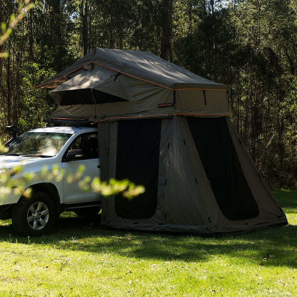 Built tough for the rugged Australian landscape, the Hi-View RTT can handle whatever you can throw at it - wind, rain and the harsh Australian sun are no bother for this little gem. Designed for maximum ventilation, the extra large zippered mesh windows on both sides provide exceptional airflow in warm weather without compromising on storm and sun protection. The adjustable fly and built-in air vents will see you through the rainy weather, preventing condensation and providing, even more, airflow, while the gusseted window awnings offer you shade on sunny days.