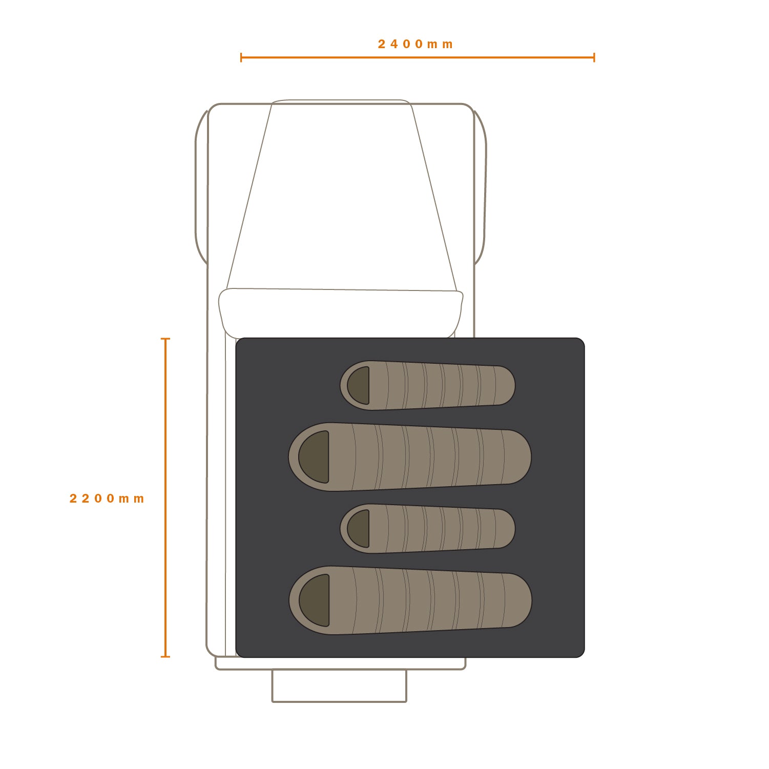 The Hi-View series is made from tough 260gsm ripstop polycotton canvas. This tent has an impressive PU 1500mm water rating and seam sealing that will keep you dry in extended rainy conditions, giving you great protection from the elements all year round. The tent includes a premium quality, high-density 65mm mattress with a removable cover and water-resistant base. There's enough room to stash your sleeping bag or doona inside, so your bed is made and waiting for you upon set up.