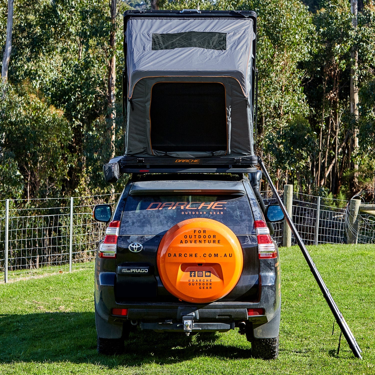 The Ridgeback body tent is made from premium 280gsm Ripstop Recycled Polyester Oxford. This tent has an impressive 3000mm water rating, high profile automotive rubber weather seals, internal seam sealing and a removable fly that will keep you dry in extended rainy conditions With roof rails accessory kits available (sold separately), the Ridgeback delivers everything you’ll ever need in a hard shell roof top tent and more. The included mounting brackets suit most commercially available flat roof rack or roof rail systems. Make sure to check the weight rating and suitability of your roof rack and vehicle with appropriate manufacturers prior to purchase. We recommend professional installation through your local 4WD centre or ask your DARCHE dealer for advice about installation.