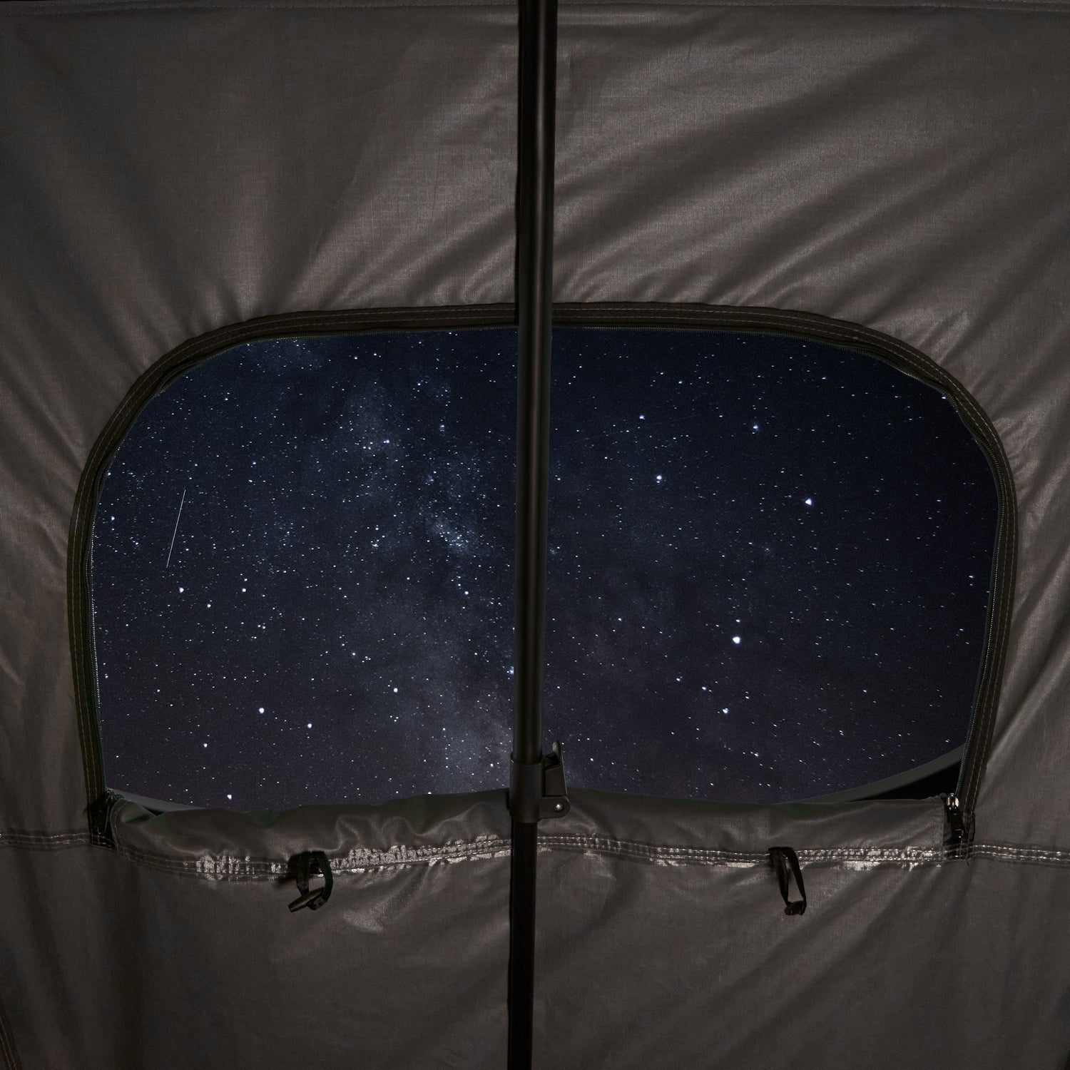There is plenty of room inside to keep you cool and comfortable. The removable fly and built-in air vents reduce condensation and provide excellent airflow, even in rainy weather. There are three full size entry points and a zippered sky window that will give you plenty of ventilation as you drift off under the starry night sky.