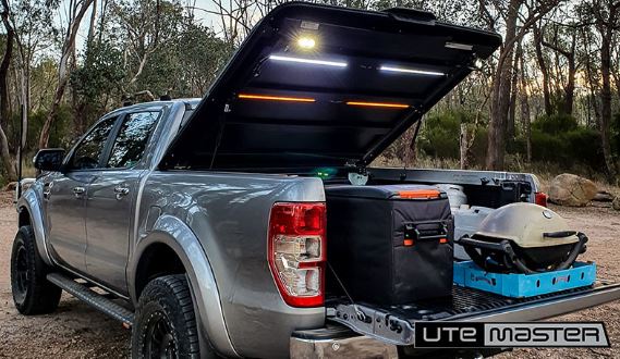 Although from the exterior it looks like a simple product, the Load-Lid incorporates up to 7m of internal bracing and heavy-duty hardware to achieve its dynamic load rating of 200kgs and a static load rating of 400kgs. The dynamic load rating refers to the amount of load you can safely carry at open road speeds using genuine Utemaster tie-down accessories. Whereas static load rating refers to the amount of weight you can put on the lid when the Ute is parked (For example, a Roof Top Tent with people inside).