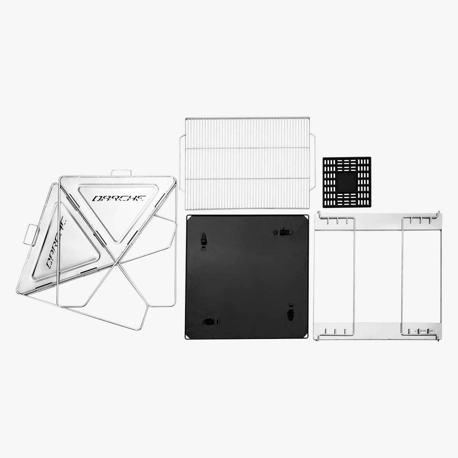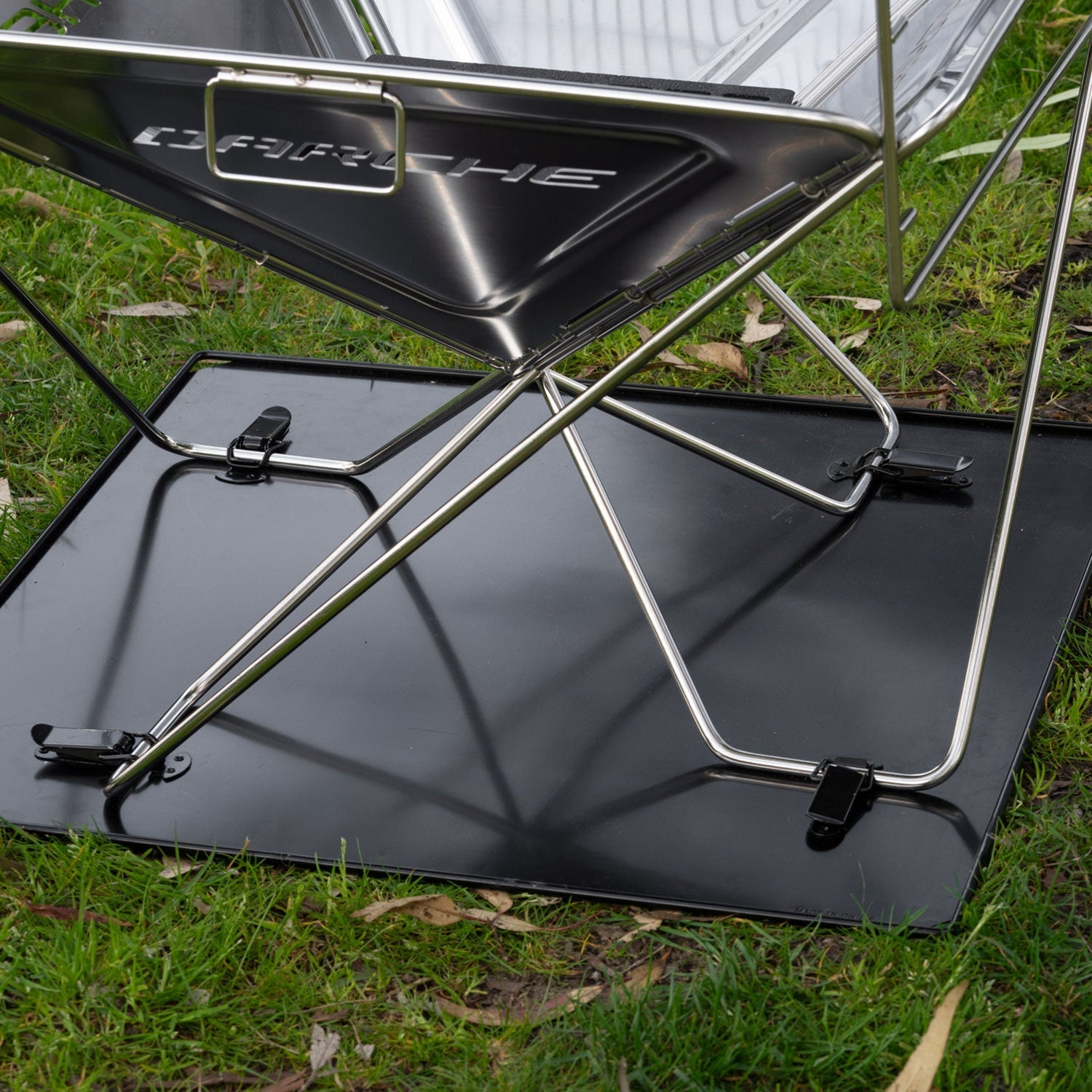 The Darche BBQ is the ultimate camp cooking accessory. Its clever design provides both a stand-alone heat source and a functional BBQ with a height-adjustable grill plate to suit your cooking style. Use it as a fire pit on cold nights and cook your steak to perfection over hot coals - It’s the only cooking accessory you’ll need in your camp setup.
