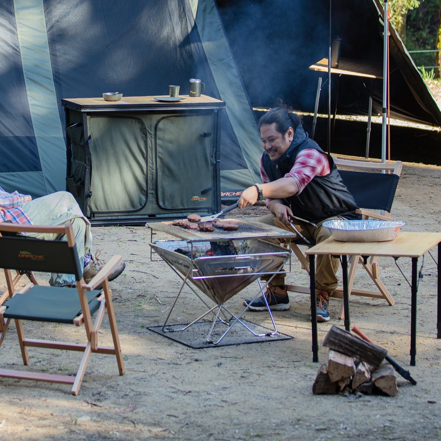 From the campsite to the backyard this convenient BBQ will keep your tribe fed and warm on your next outdoor adventure.