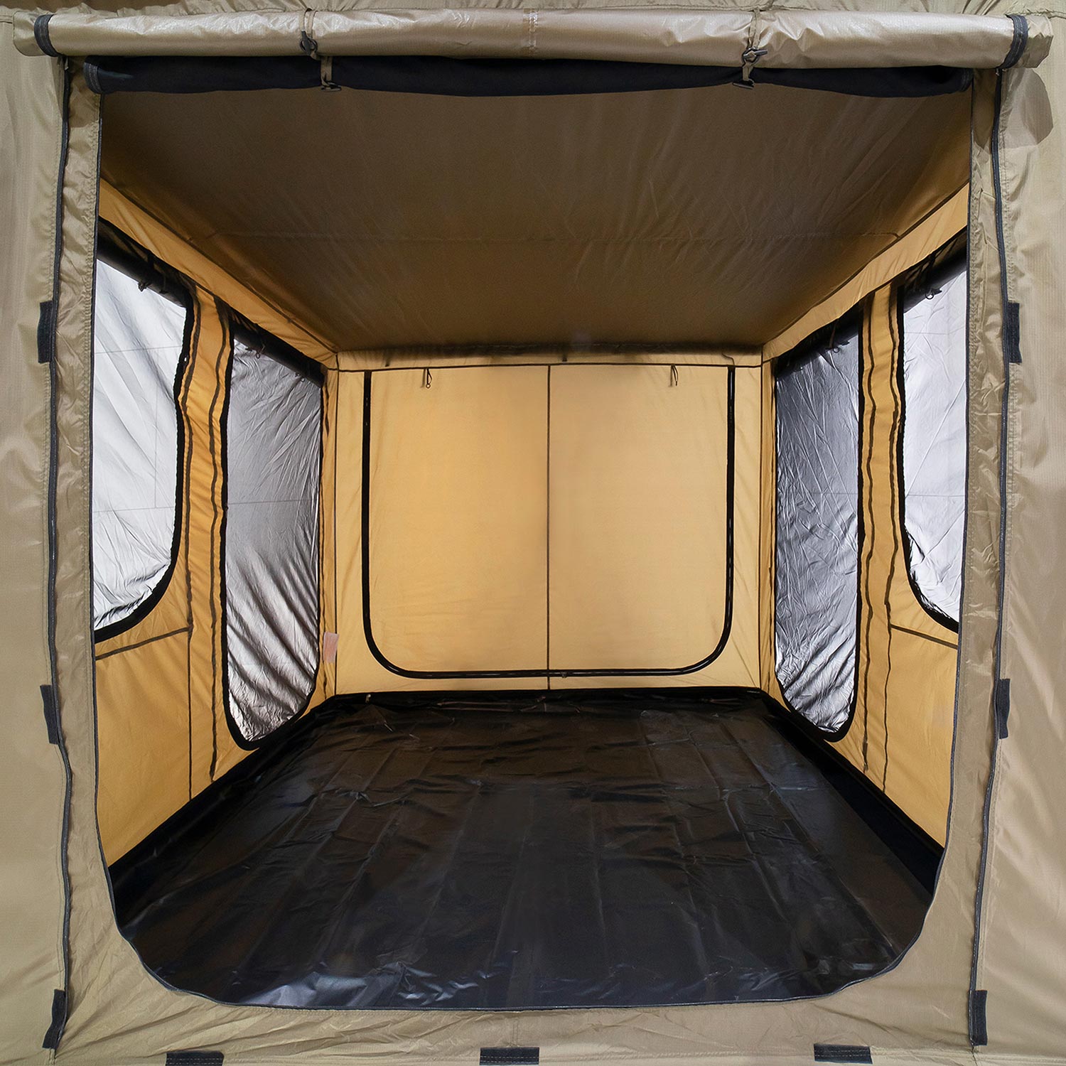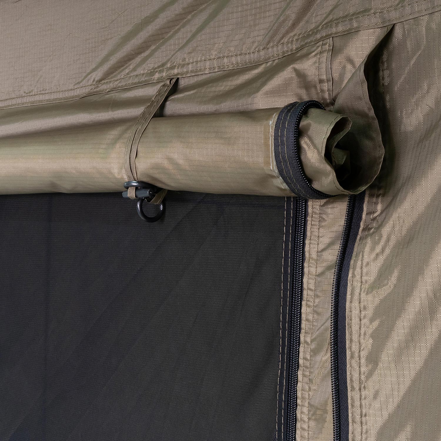 There are three entries to this annex giving you unlimited access no matter where you pull up, plus it has a rear opening so you can get to your vehicle without stepping outside. The sides have both doors and gusset windows to allow for airflow, especially in rainy conditions. If you want some extra shade, you can convert the front and side roll up doors into awnings by adding telescopic alloy poles (sold separately).