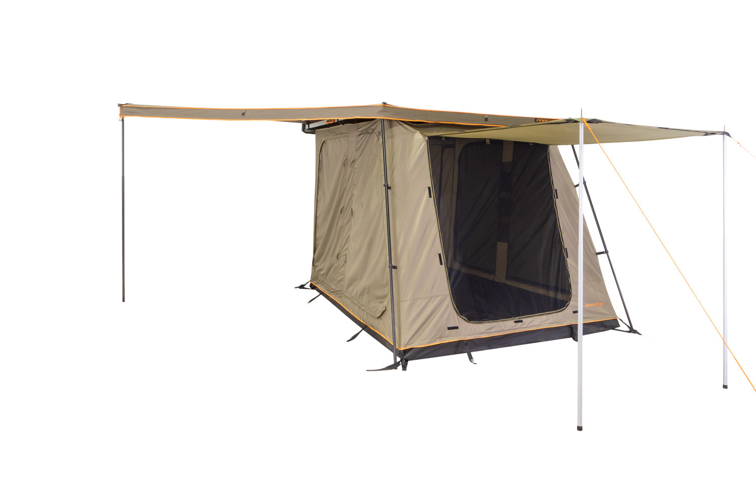 There are three large entries to this annex giving you unlimited access no matter where you pull up, plus it has rear access so you can get to your vehicle without stepping outside. Both sides have double D-doors and the front has a massive single entry with a privacy door that can convert to an annex for extended shade and shelter (telescopic alloy poles sold separately). All front and side entries have dual-zippered privacy and fine mesh doors that will give you plenty of ventilation while keeping the critters at bay - great in humid conditions.