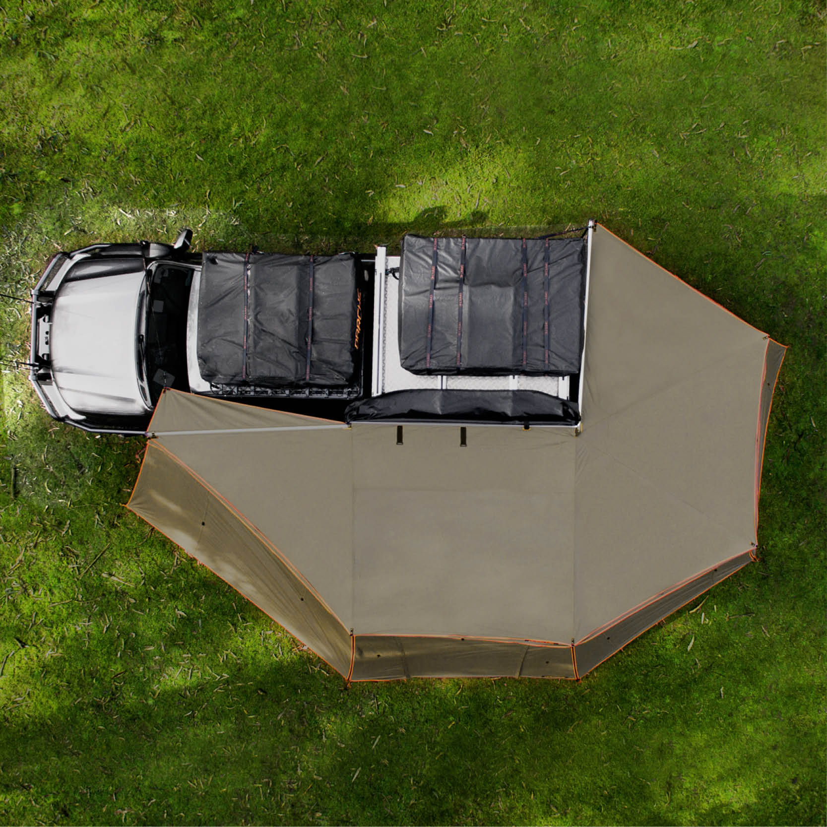 The Eclipse 270° Awning brings next-level shade to your 4WD camping setup. Offering a huge 11.5m² of instant cover, it spans the full length of your vehicle, then wraps around to the rear, giving you greater cover than a straight awning.