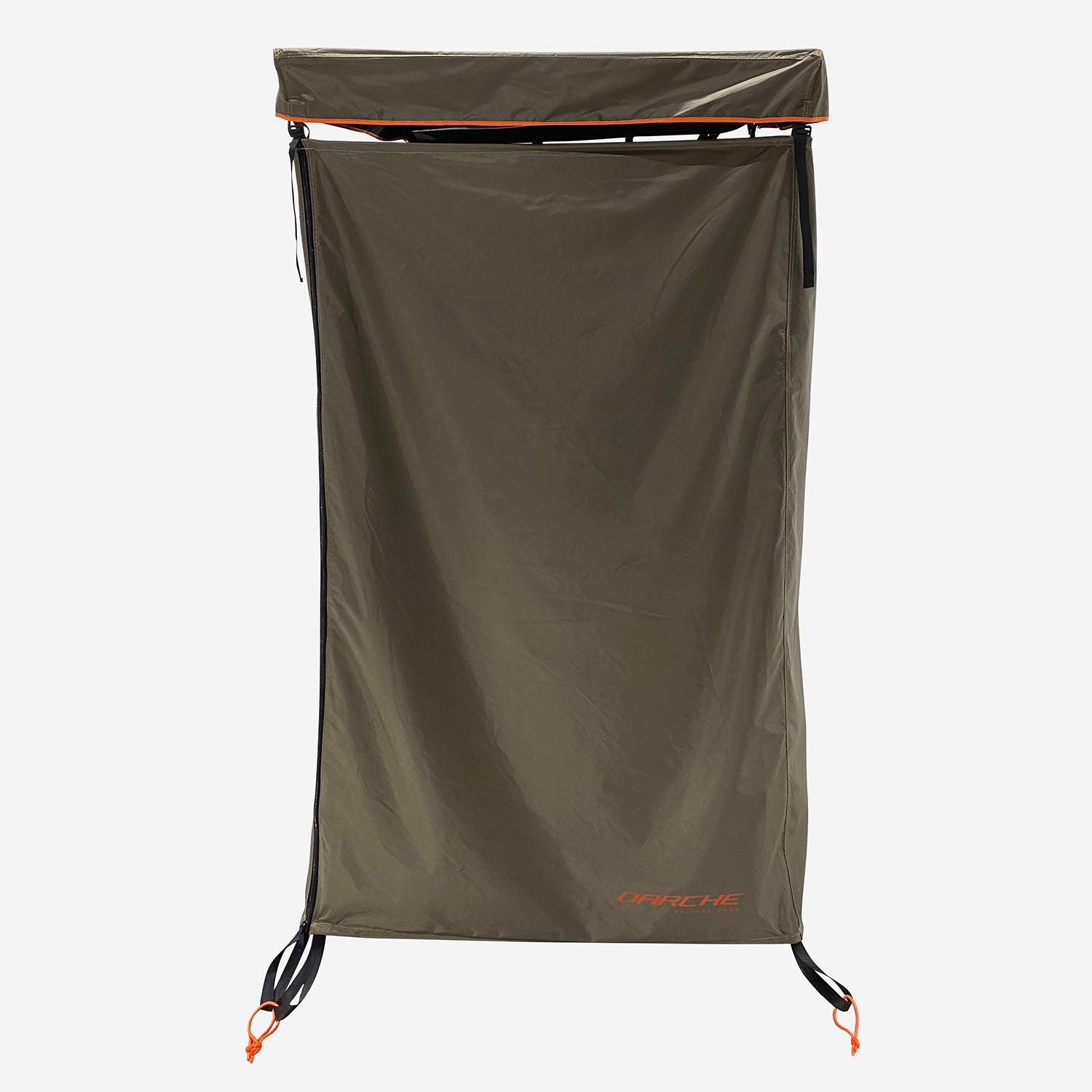 The polyester walls include a black privacy coating, making it perfect for showering, changing or use as toilet cubicle and the detachable roof can be removed or rolled back for extra ventilation or so you can enjoy the sky views while you shower.