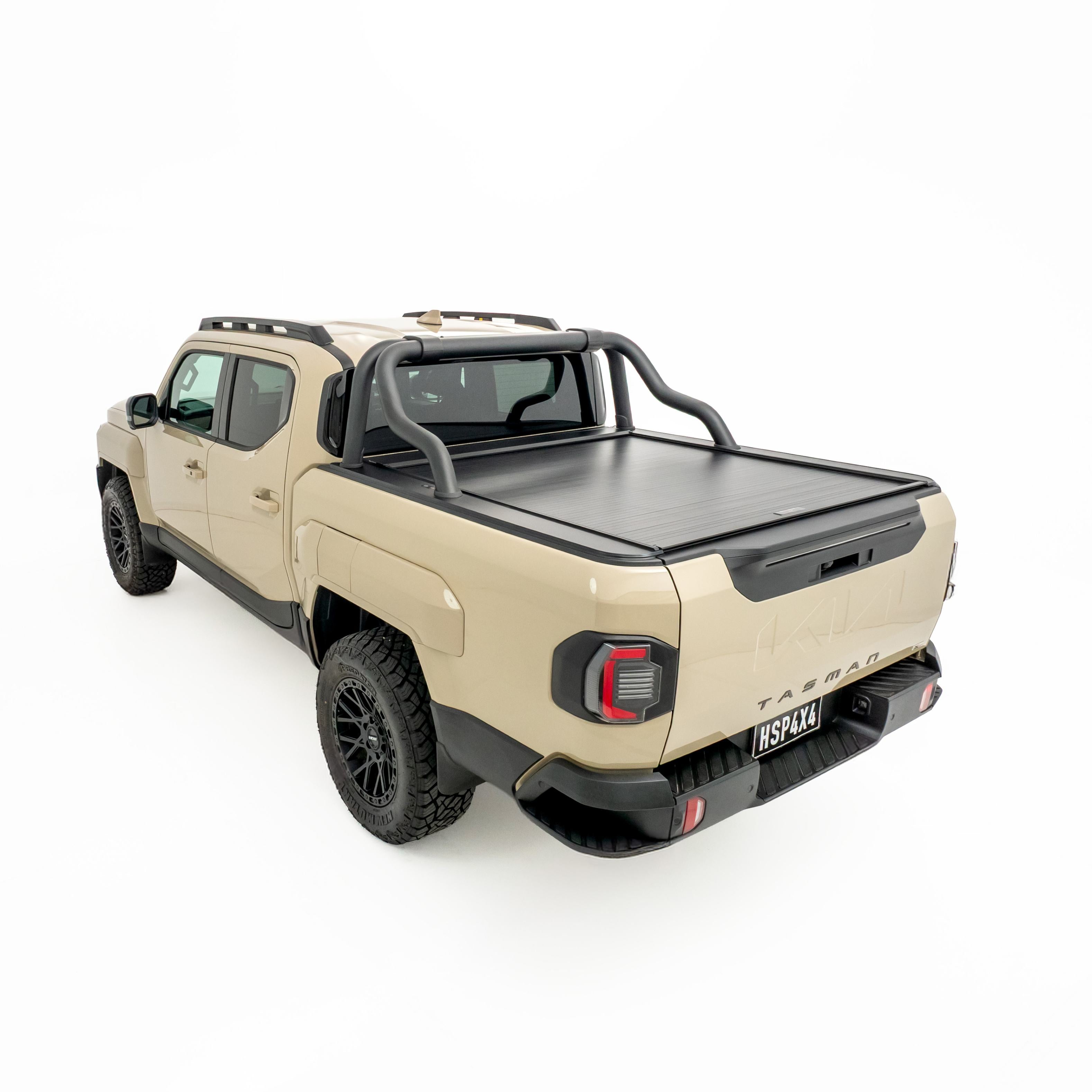 The Kia Tasman Electric Roller Cover is the ultimate accessory to enhance your vehicle’s potential. This is why The HSP Roll R Cover is Australia’s favourite roll top. With features such a built-in LED light, advanced water drainage and the ability to open, close and pause the unit via a touch sensor, your mobile phone or even your factory remote. We are, proudly the only 100% Australian manufactured (not just made) electric Kia Tasman roller cover in the world and all come with a 3-year warranty standard. Find more Kia Tasman Accessories today.