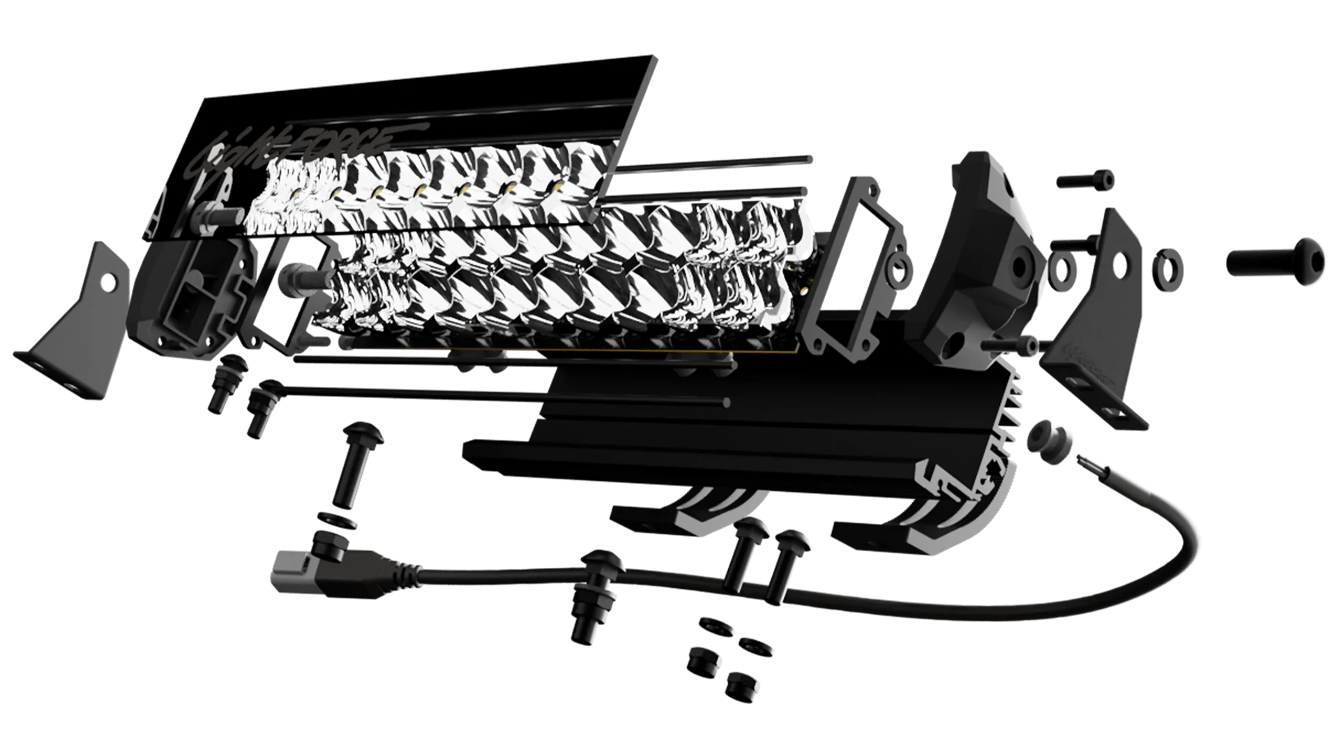 Lightforce Viper 10” Dual Row Light Bars designed for auxiliary and reverse lighting come complete with end mounts, rear slide mounts and full harness with 8-pin switch connector, allowing for a plug-and-play solution with factory-style switches.