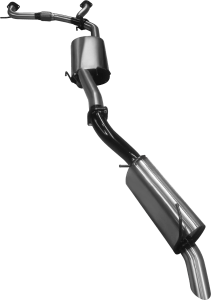 - The “Cat Back” system runs from the cats back, in dual 2.5″ mandrel bent pipe-work, into single 3″ pipe-work, with two straight-through glass packed mufflers to keep the noise down.