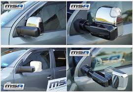 MSA 4X4’s patented, SEMA award-winning Towing Mirrors feature a large single mirror that pivots on a heavy-duty extension slide. Allowing the mirror to extend out when towing and return to a normal driving position, when not towing.